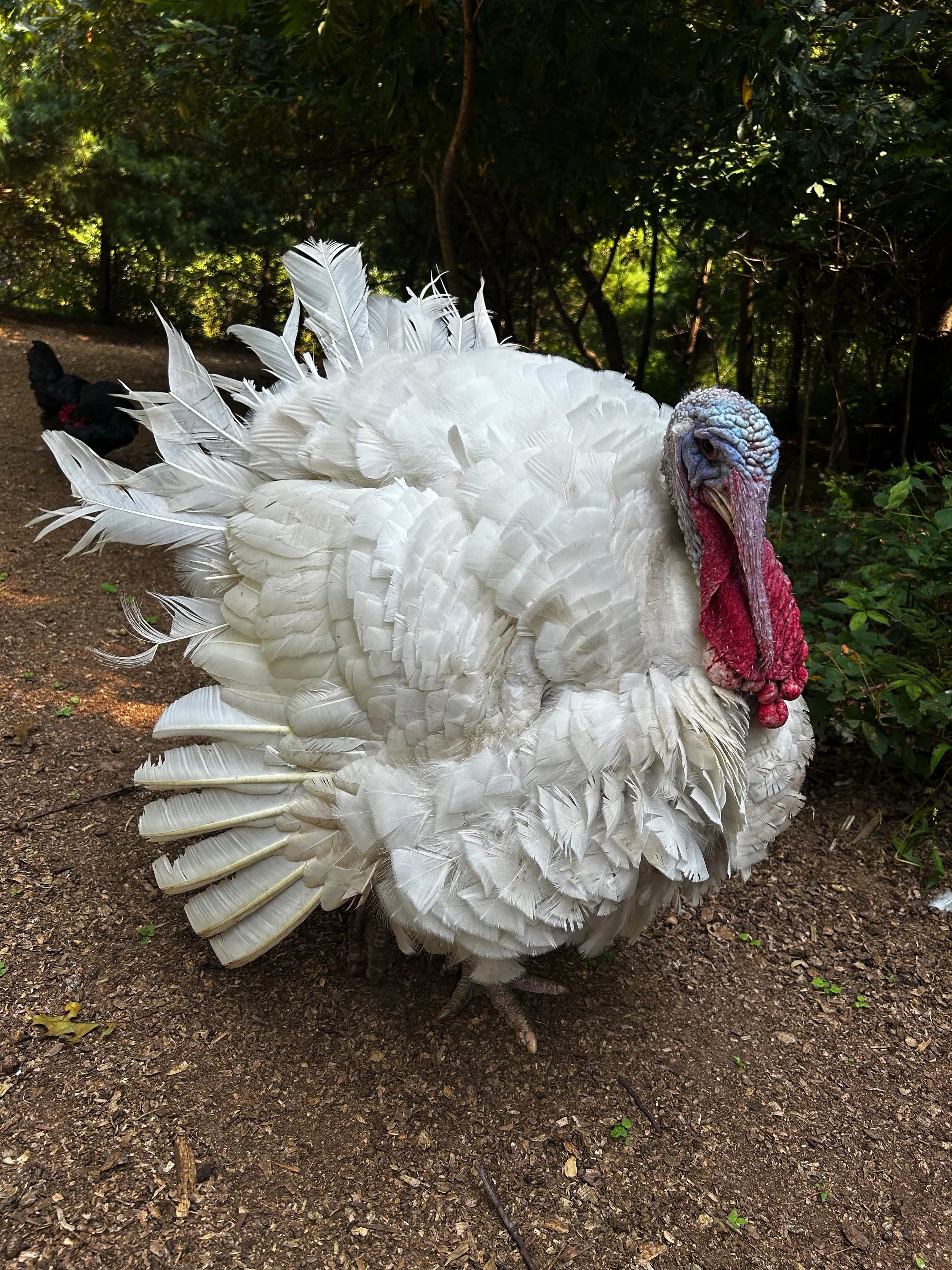 Turkeys are extremely intelligent and social animals. They are community oriented and form extremely strong bonds and relationships. The home range of wild turkeys can extend up to 60,000 acres! This is a stark contrast from the cramped spaces allotted to turkeys who are raised within the agricultural industry. Turkeys raised for food are typically housed in dark, cramped sheds with hundreds or thousands of other turkeys. They are disfigured by farmers when they are young as to rid them of their natural defenses, such as the painful process of removing their toes/claws and beaks. Billions are killed every year for food, with 46 million of them killed for Thanksgiving in the United States alone. At SoL, our turkey friends will never have to worry about being exploited again.
