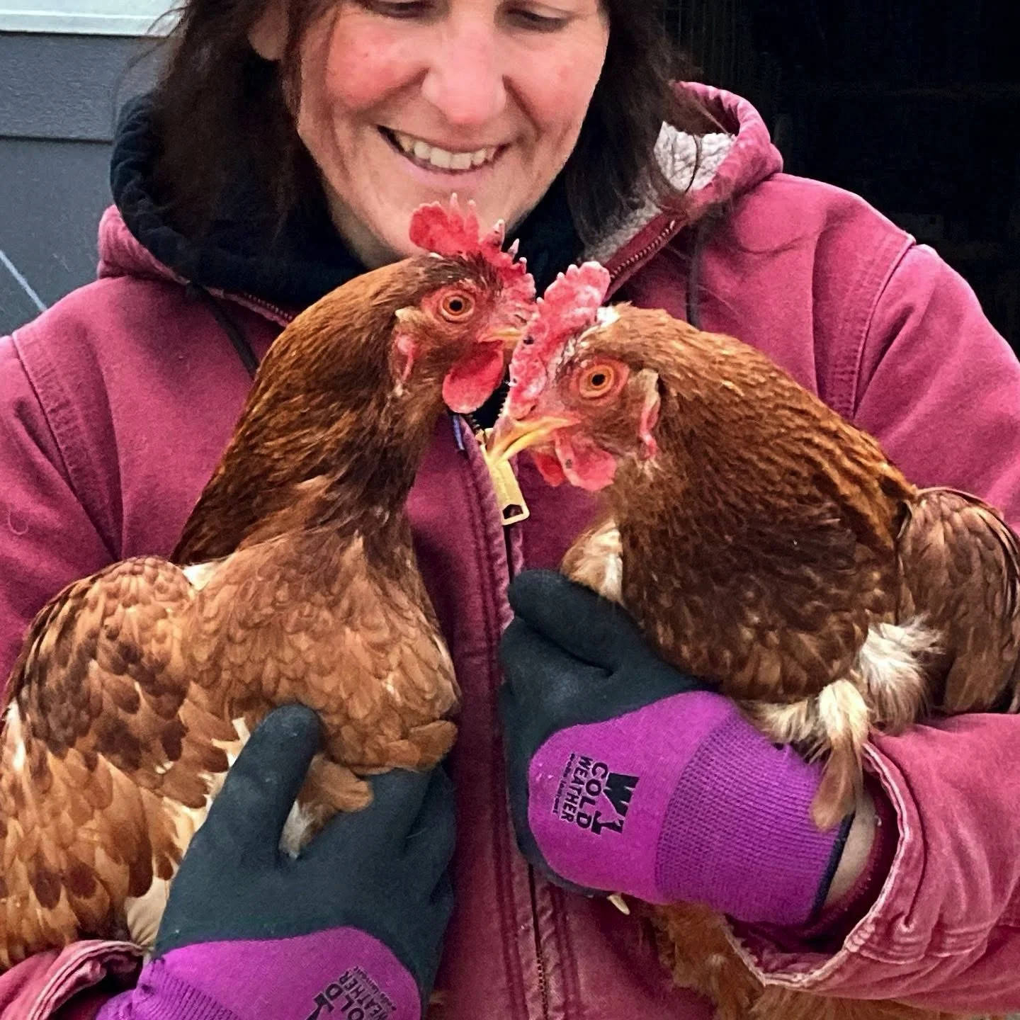 Olive and Esther came to us from our friends at Spring Farm Sanctuary when they were ready to retire and the girls needed a soft place to land. They are the cutest little busy bodies!